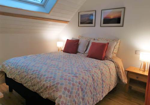 Red Oak Room with an area of 16 m2 is the smallest but thanks to a skilful mix of materials and tanned lighting, it is very cozy and cocooning. We feel good there. It takes its name from the magnificent American red oak located at the gable of the barn and which seems to protect the building and perhaps your sleep. From the bedroom, in the morning, you will wake up admiring the sunrise. You will have direct access to a terrace.